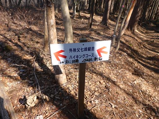 外秩父七峰縦走ハイキングコースの標識があちらこちらにある。
