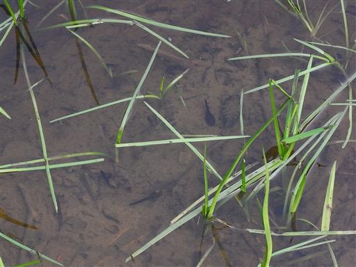 カエルの姿は全く見られないが、池を覗くとオタマジャクシがたくさんいる。