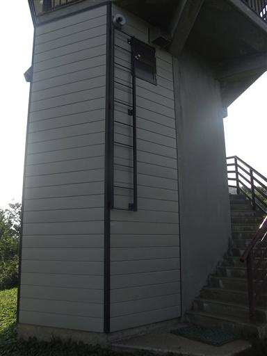 壁の途中からある梯子は、雪が積もっているときに使うものなのだろうか?