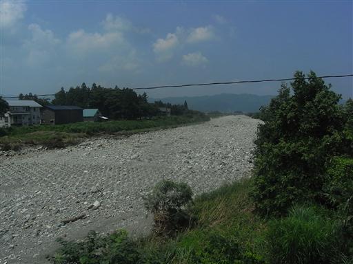 バスに乗って浦佐駅へ向かう途中、越後三山から発する水無川を渡る。