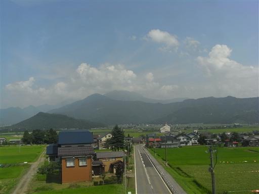 帰りの新幹線から、平野から良く目立つ八海山を眺める。