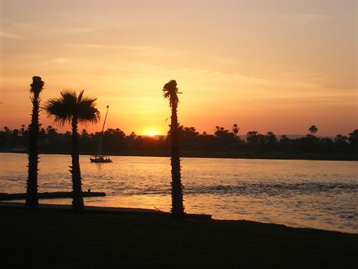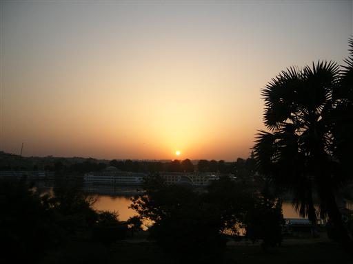 ホテルに到着。ナイルの向こうに夕日が沈む。