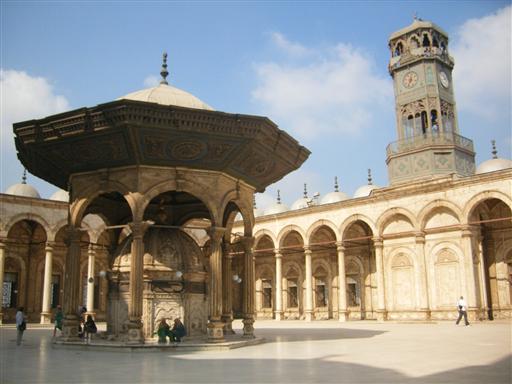 モスクの中庭。右手に見える時計はルクソール神殿のオベリスクと交換で