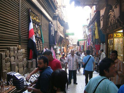 エジプトの古い市場だが、ほとんどが観光客用の土産物屋で