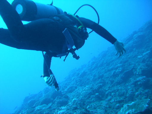 ダイビング開始。海の中は青一色。