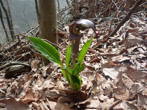 マムシグサだろうか?不思議な形の植物だ。