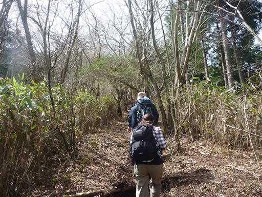 山頂直下は笹原が広がっている。