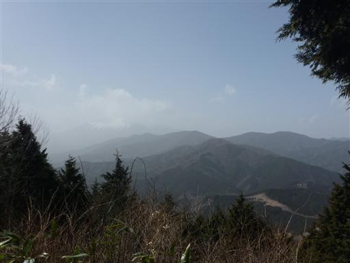 かなり霞んではいるが、ここからは富士山の姿がぼんやりと見える。