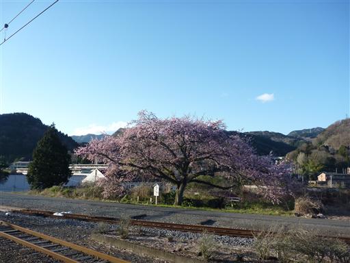 線路の脇には桜の巨木が見事な花を咲かせていた。