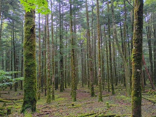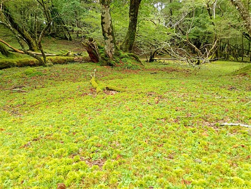 倒木もコケに覆われている。