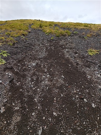砂だらけの登山道は登りは辛いが、下りは砂走りのようで楽々だ。