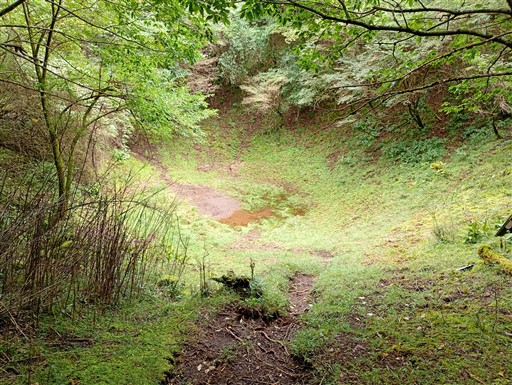 はっきりそれと分かる噴火口がある。こんな小さなスコリア丘に噴火口があるとは思わなかった。