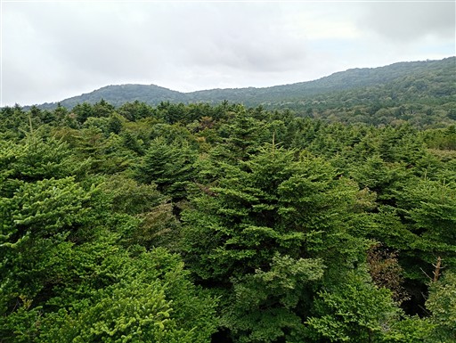 整然と並ぶ木。この辺りは植林地帯なのだろうか?あまりにも整然としすぎている。