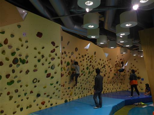 人気のクライミングウォールはすぐに定員に達する。