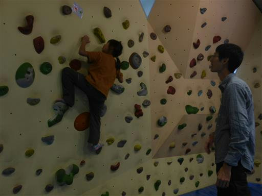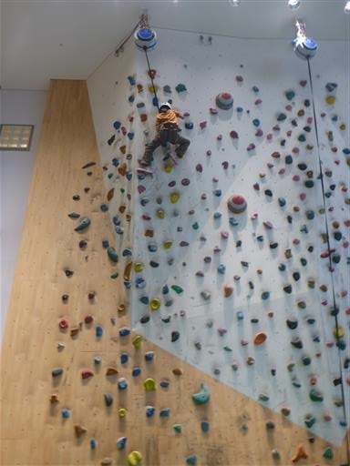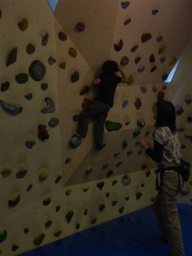 はじめてのクライミング。娘は比較的器用に登っている。