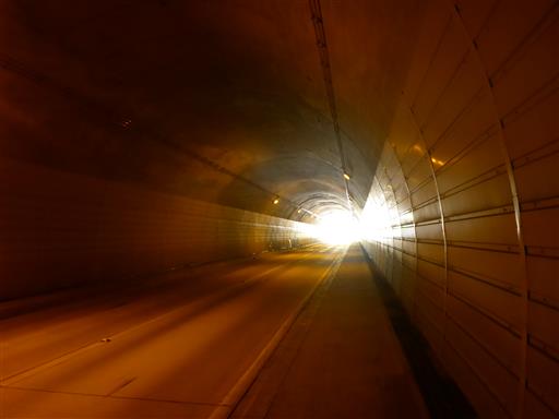 長いトンネルを抜ける。車やバイクが通ると音がかなりうるさい。