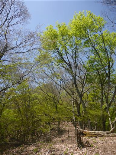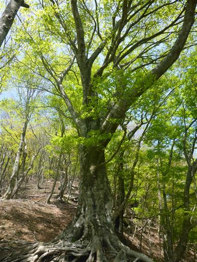 立派なブナの木。新緑が美しい。
