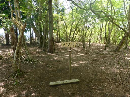 しばらく歩くとミツバ岳に到着する。標高836m。