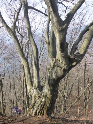 扇山の山頂直下に一際目立つ大木が立っている。