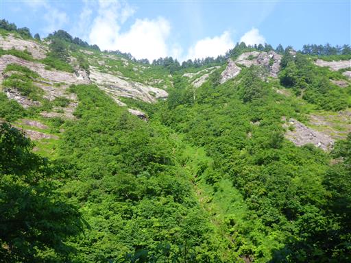 沢の対岸には見事な岩壁が見える。