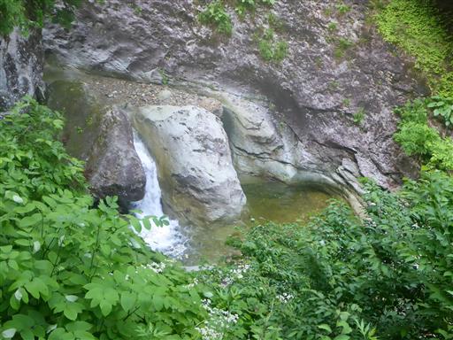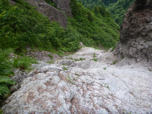 沢には小さな雪渓が残っている。