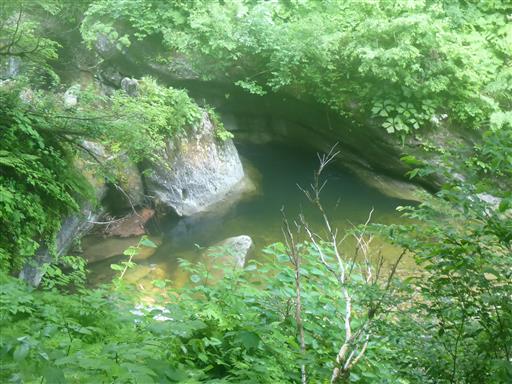 淵。ちょっと水は濁っている。