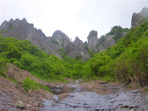 右手に岩峰群が見える。御前ヶ遊窟の辺りの岩峰だろうか?