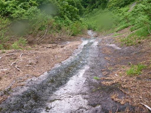 水量は少なく歩きやすい。最後は登山道が鍬沢を横切るはずなので、