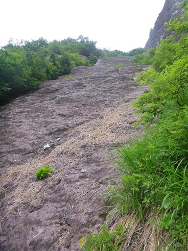 トラロープがあるが、とっても登りにくい道。