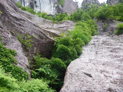 深い岩溝に木が生えている。まるでクレバスみたいだ。