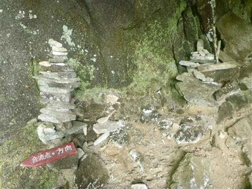 左側に渡って登ってみるがそちらはルートではないようで引き返す。