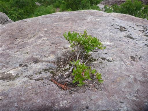 岩の上に小さな木が根を下ろしている。