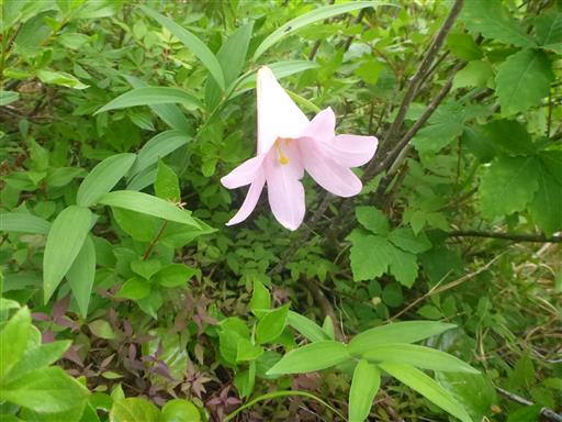 なんとヒメサユリを発見。ピンク色の可憐なユリだ。