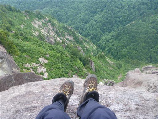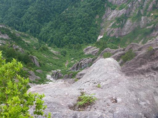 足元を見下ろす。真ん中に見える小さな沢からここまで登ってきた。