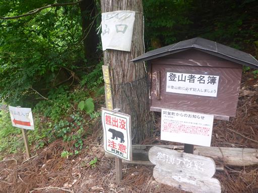 ほどなく、登山開始地点に戻ってくる。登山者名簿に下山時刻を記入する。