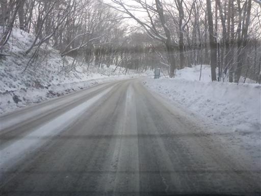 途中で山道を走るが、スノータイヤは驚くほど滑らない。