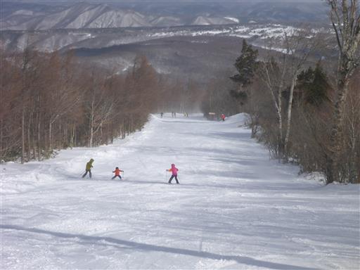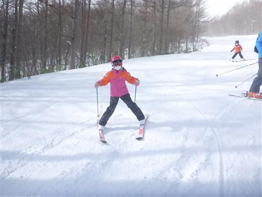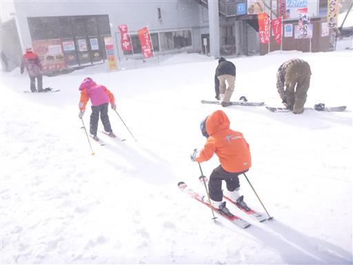 息子はすぐに直滑降になってしまうため、ゆっくりと滑って曲がる練習を繰り返す。