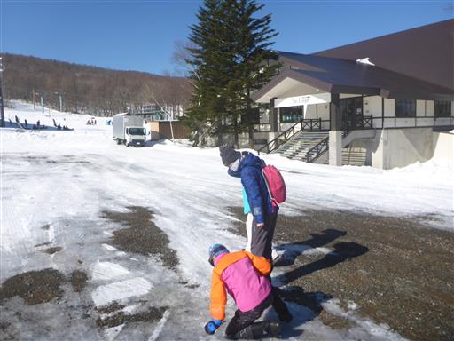 地面は凍り付いていて、さっそく息子が滑ってこけている。