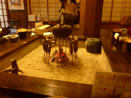 夕食は囲炉裏のそばで。雰囲気があって非常に良い。