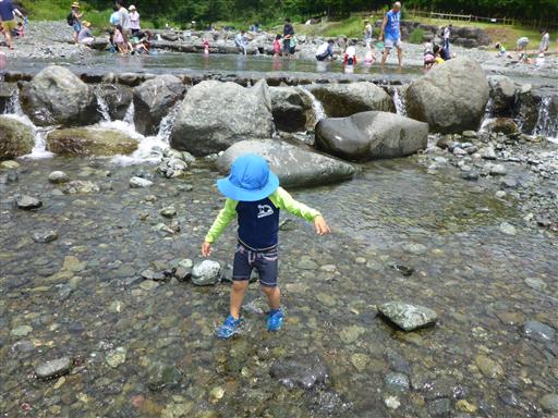 川に入ろうとしてサンダルを持ってくるのを忘れたことに気付く。