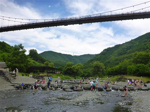 水無川に到着する。頭上に見えるのは風の吊り橋だ。