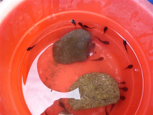 この時期はおたまじゃくしが多い。もっぱらおたまじゃくしを捕まえて遊ぶ。