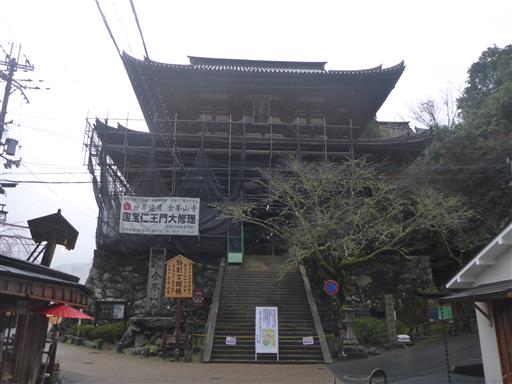 金峯山寺の仁王門は残念ながら修復中で通ることができない。