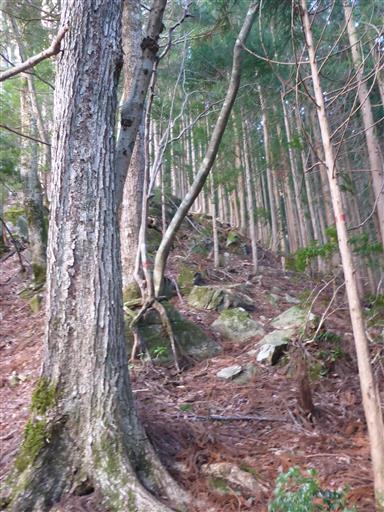 植林地帯の中を登って行く。