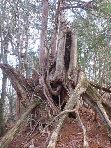 ところどころ自然林も混じるようになってきた。大木も見られる。