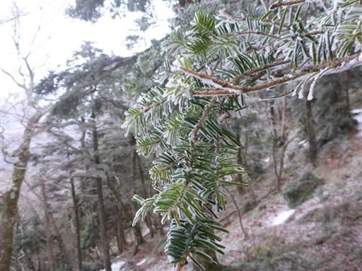 シラビソの葉は凍り付いてる。