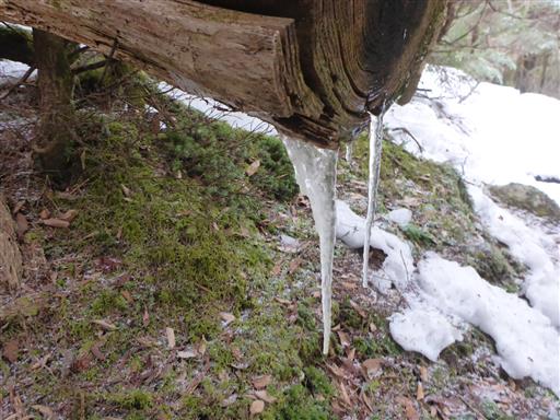 登山道だけ凍り付いていて歩きにくい…