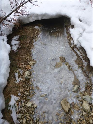 凍りついた氷が美しい模様を描いている。