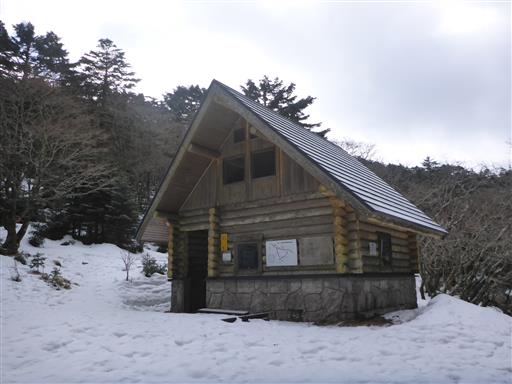 弥山には大きな小屋があるが冬季閉鎖中だ。