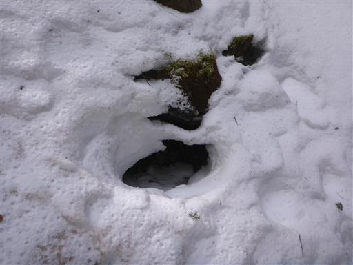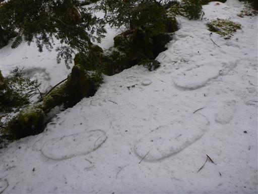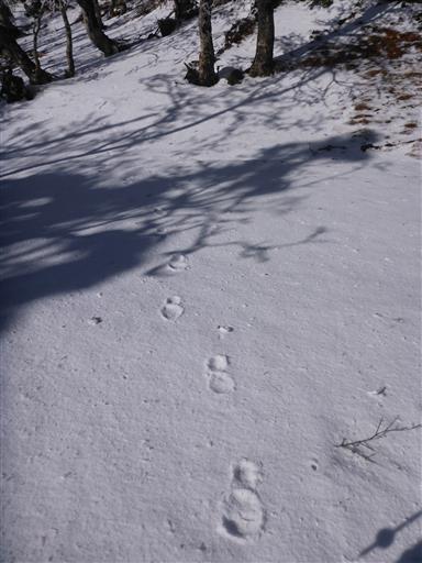 ここからだんだん雪が深くなってくる。ところどころ踏み抜いた跡がある。
